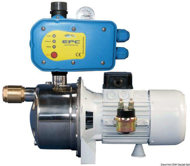 Corpo pompa in acciaio inox. Vaso espansione in acciaio inox. Pompa autoadescante, è consigliata l'installazione di valvola di non ritorno sull'aspirazione. Complete di Manometro e relè.