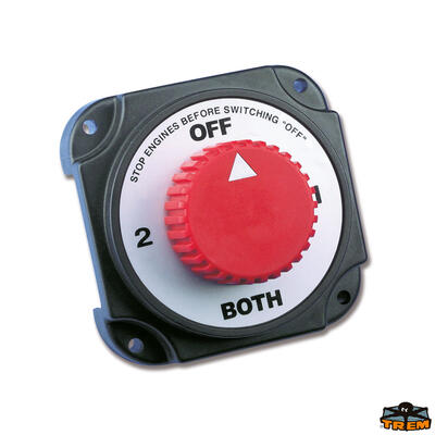 Può gestire 2 banchi batteria. Si collega sotto chiave, se si vuole togliere completamente la corrente in modo automatico (in questo caso la chiave d’avviamento ha bisogno di uno scatto supplementare) oppure semplicemente con un interruttore ON-OFF indipendente dalla chiave, che può anche essere nascosto a far da antifurto. Grado protezione IP65, contatti in rame argentato. Stacco del positivo o del negativo.