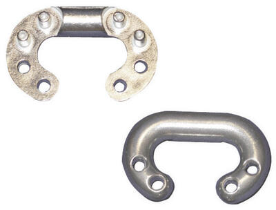 In acciaio inox AISI 316. Alta resistenza dovuta alla struttura con 8 perni di tenuta che consente di raggiungere carichi di lavoro e di rottura equivalenti o superiori a quelli delle relative catene. Misure in mm corrispondenti a quelle delle catene calibrate per argani (contrariamente alle false maglie disponibili sul mercato che sono generalmente in pollici) e quindi scorrono perfettamente nel barbotin evitando pericolosi inceppamenti.