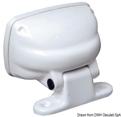 Fanale di via a 225° Art. 11.415.03 conforme alle norme IMCO e RINA Abbinato con speciale faretto alogeno da 35 W 12 V dicroico con vetro anteriore (lampadina ricambio 13.258.57). Realizzato tutto in policarbonato nero, a perfetta tenuta stagna. Speciale sistema flessibile di bandelle laterali che ne permettono l’uso su alberi di qualsiasi dimensione. Monta fanale omologato RINA 11.415.03 (lampadina ricambio 14.300.00).