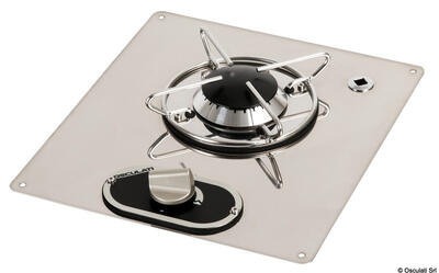 Con coperchio in vetro nero fumè, temperato, autobloccante. Cerniere a scomparsa. Griglia di supporto in inox con gommini antivibrazione.Bruciatori ad alta efficienza. Accensione manuale. Omologazione CE.