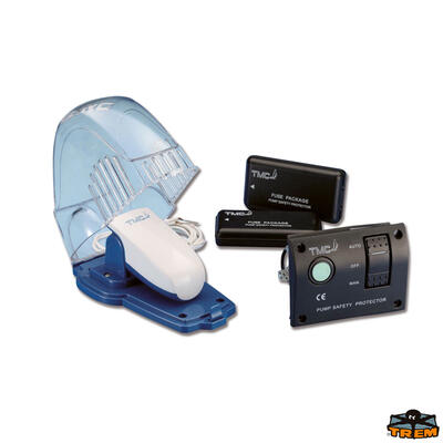 Formato da un automatismo per pompe modello Rule-A-Matic-Plus + strumento circolare da incasso che informa con un segnale acustico da 85 db + allarme ottico della presenza di acqua.
