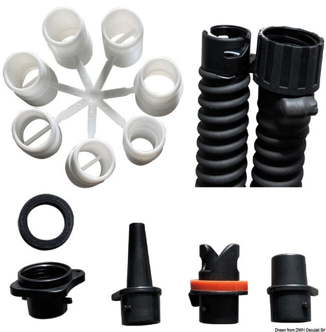 Raccordo con attacco a baionetta tra tubo gonfiatore (Ø 20 mm) e valvole di gonfiaggio tipo 66.446.64; 66.446.65 e altre equivalenti (Halkey Roberts, Ceredi ecc).