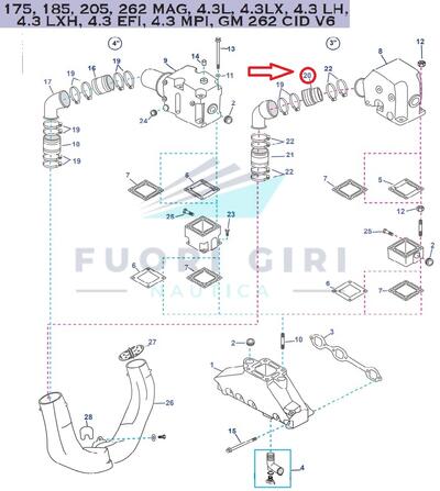 - MANICOTTO SCARICO COMPATIBILE PER MERCRUISER 165, 170, 180, 190, 470, 485, 488 3.7L & 3.7LX MCM 224 CID 4 cyl (1980-89)-175, 185, 205, 262 MAG, 4.3L, 4.3LX, 4.3 LH,4.3 LXH, 4.3 EFI, 4.3 MPI, GM 262 CID V6 RECMAR