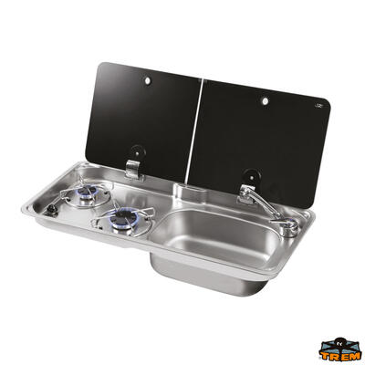 Con coperchio in vetro nero fumè, temperato, autobloccante. Cerniere a scomparsa. Griglia di supporto in inox con gommini antivibrazione.Bruciatori ad alta efficienza. Accensione manuale. Omologazione CE.