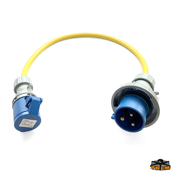 Presa con corpo in Luran resistente UV, copertura posteriore protezione cavi, contatti in ottone argentato. Voltaggio 220/110. Amperaggio max 30 A.