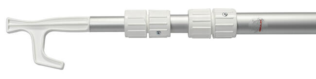 Realizzato tutto in alluminio lucidato e anodizzato, con gancio in nylon e manopola terminale. E’ un mezzo marinaio molto robusto, fabbricato con 3 tubi concentrici. Si può bloccare in qualsiasi posizione, tramite le speciali camme di serraggio.