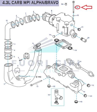 GOMITO SCARICO COMPATIBILE PER MERCRUISER 175, 185, 205, 262 MAG, 4.3L, 4.3LX, 4.3 LH,4.3 LXH, 4.3 EFI, 4.3 MPI, GM 262 CID V6 RECMAR